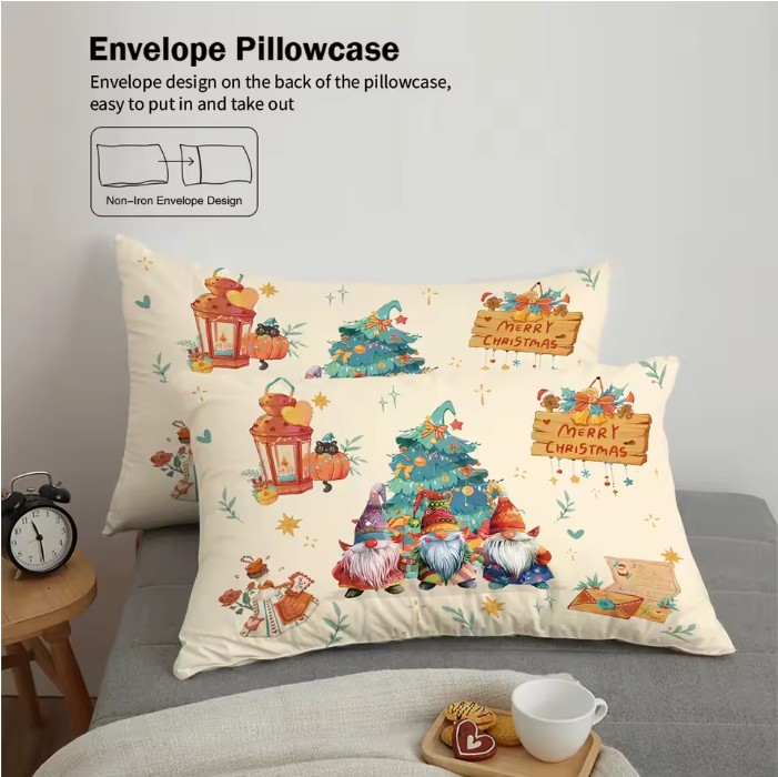3pcs Merry Christmas Print Bedding Set – Soft, Coreless & Washable (Multi-Size)